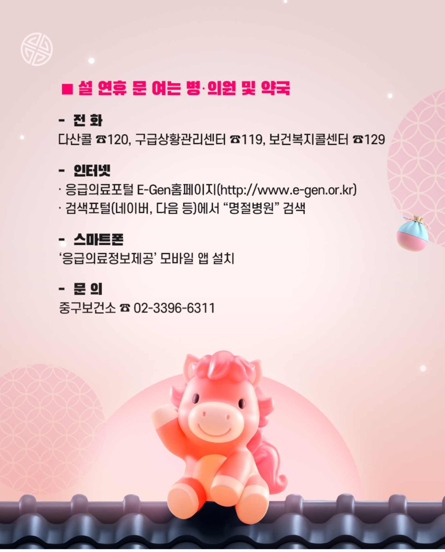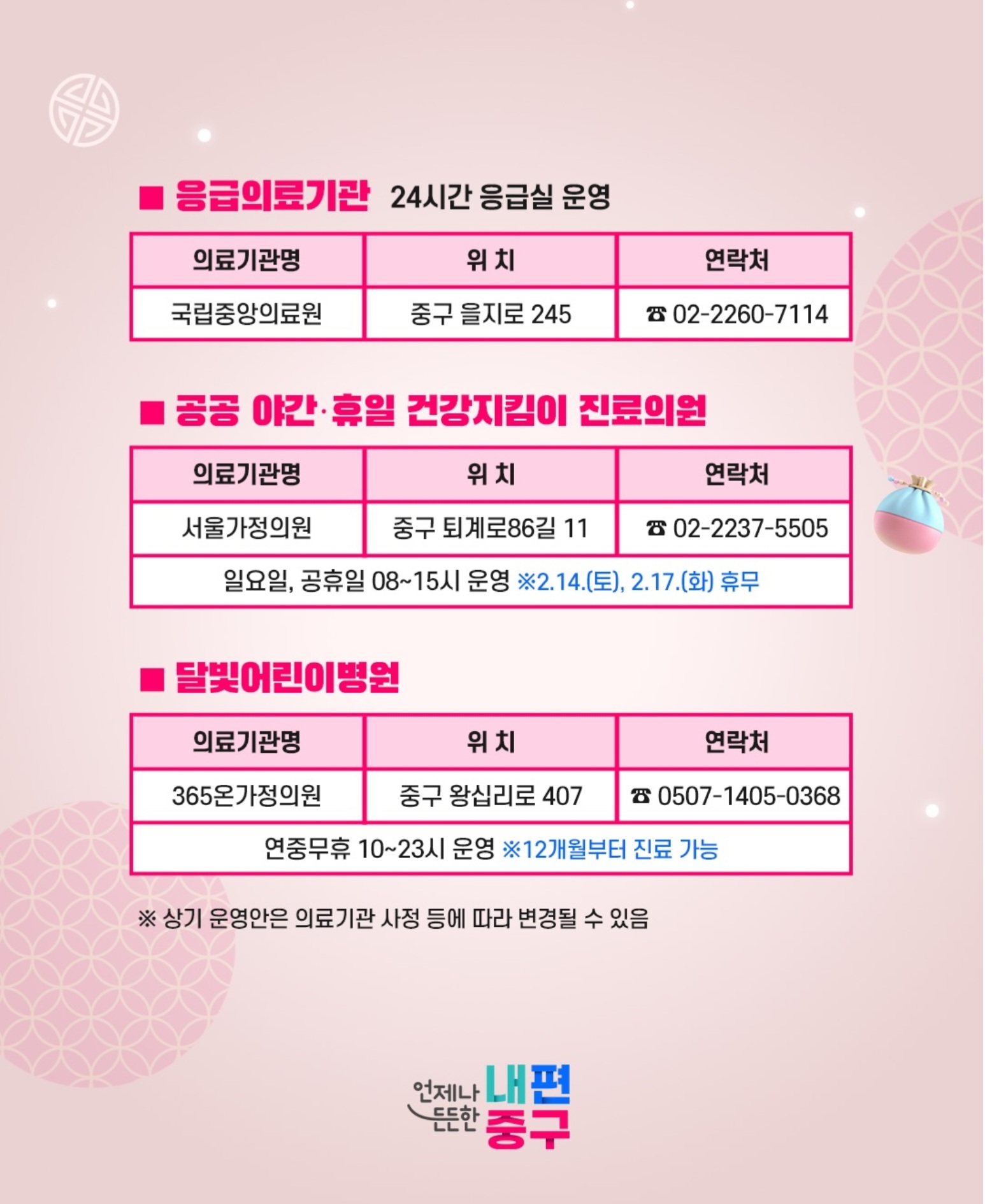 [서울중구청] 설 연휴 문 여는 병의원 및 약국 안내