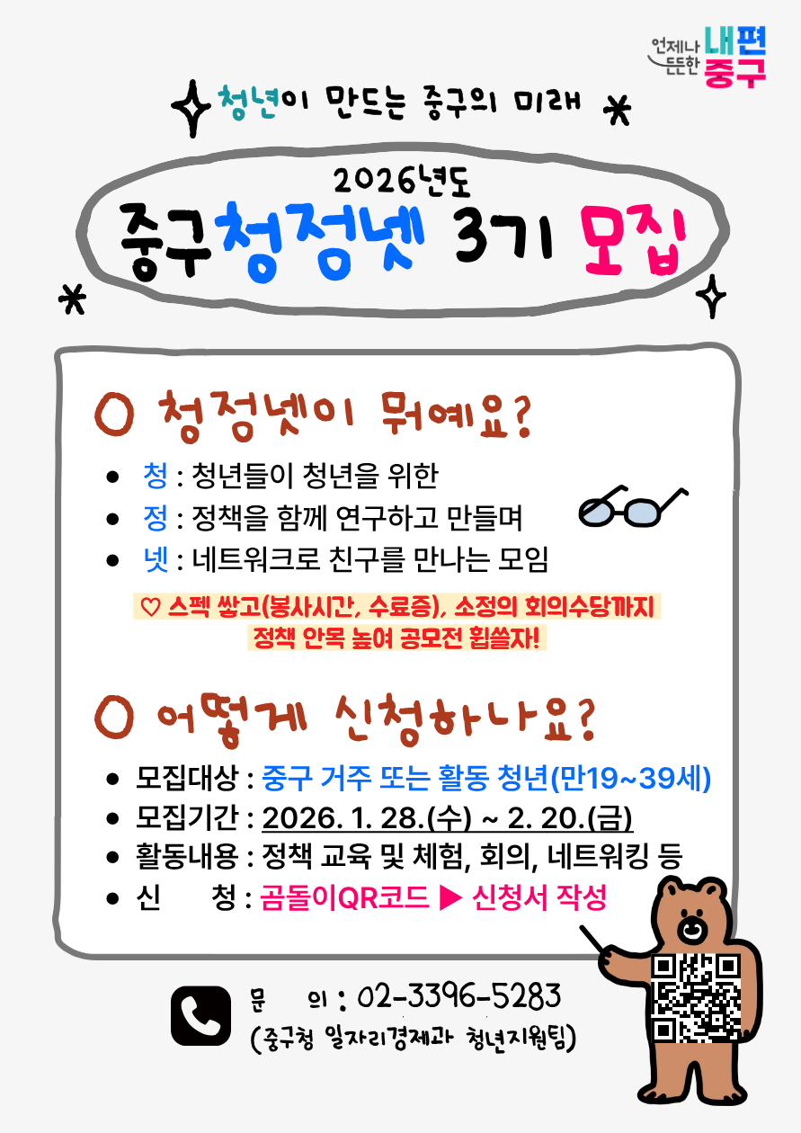 중구 청년정책네트워크(중구청정넷) 3기 위원 모집 홍보
