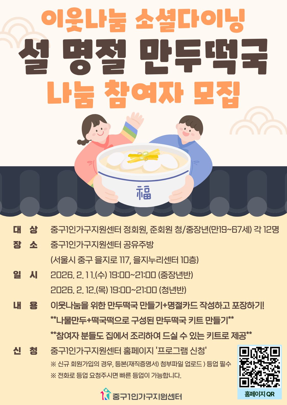 -결과 확인: 2026년 2월 5일(금) 오후, 선정자에 한해 개별 문자로 안내드릴 예정이며, 홈페이지 [마이페이지 > 프로그램 신청관리]에서 선정 상태를 확인하실 수 있습니다.